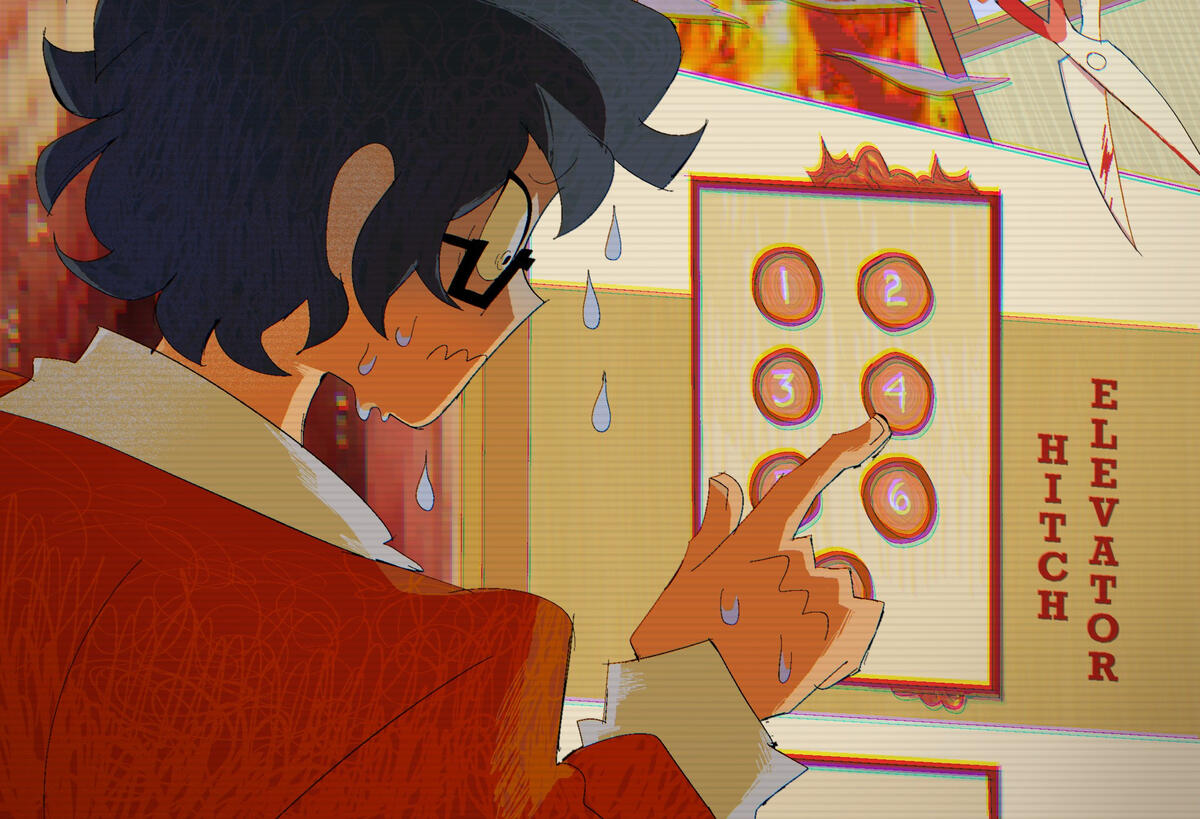Elevator Hitch é um pequeno romance visual surreal de terror / sala de fuga em 2.5D com elementos de apontar e clicar e quebra-cabeças que segue a história de dois colegas de trabalho que de repente se encontram presos juntos em um elevador de escritório "Perfeitamente Normal" dos anos 70.Feito por RachelDrawsThis no RPG Maker MV e traduzido por Ashiri .